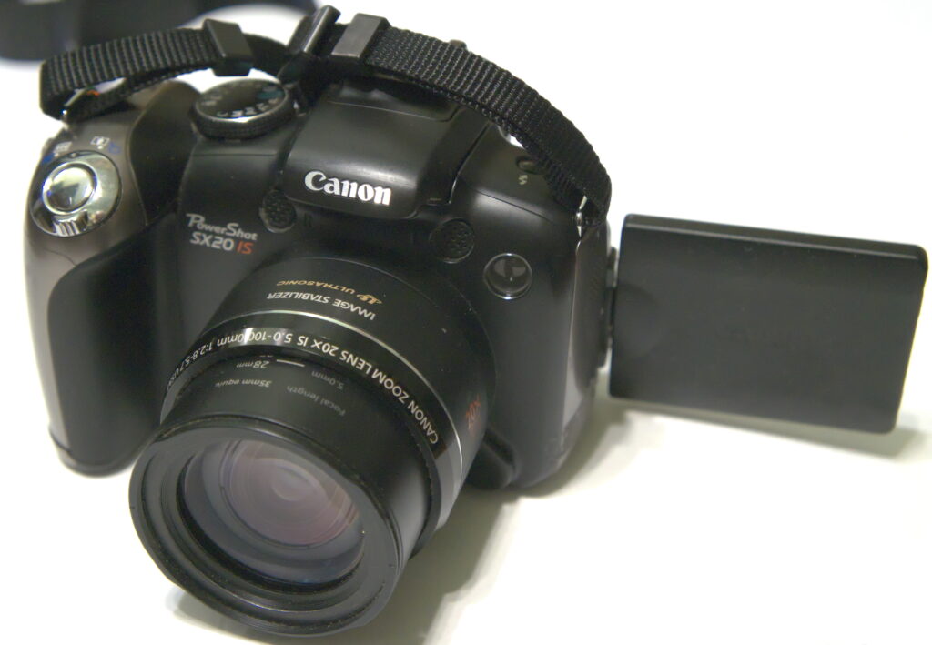 A superzoom contemporary with the Fujifilm HS10, the Kodak Z981, and the Nikon P100. Of all those cameras, it has the shortest lens range, but still a wide enough range that it‘s hard to complain. The image quality is excellent; it seems to be the best of all of them by a noticeable margin. The camera does not natively save raw files, but in can be hacked with the Canon Hack Development Kit to provide every feature you could think of in a camera, including raw files in DNG format. The screen that swings every which way seems more like a gimmick than a useful feature; it’s more mobile but smaller than the back-panel screens on any of the SX20’s contemporaries. On the other hand, the electronic viewfinder is the best of the lot. It would be even better if it had focus assistance like the Fuji; without that aid, manual focusing is iffy, whereas it can be relied on with the Fuji.