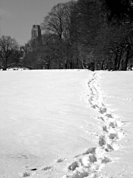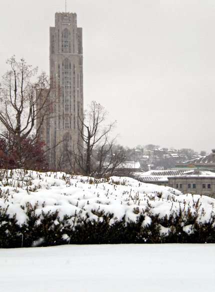 The Bob O’Connor Golf Course at Schenley Park, like the rest of the city, was quickly covered with eight inches of snow overnight. The next day, the snow was still fresh and untouched, except where the occasional adventurous walker had made a path through it.